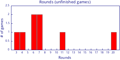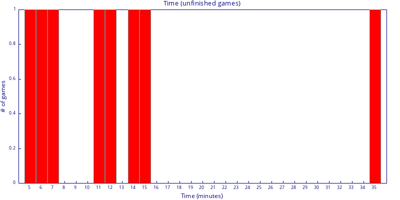 Unfinished games: 7 players failed to finish a grand total of 8 games, which dragged on for 1:44:11 hours and 64 rounds, an average of 1:38 minutes per round.